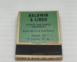 Vintage Matchbook Cover Baldwin & Liner Front Strike Unstruck KG