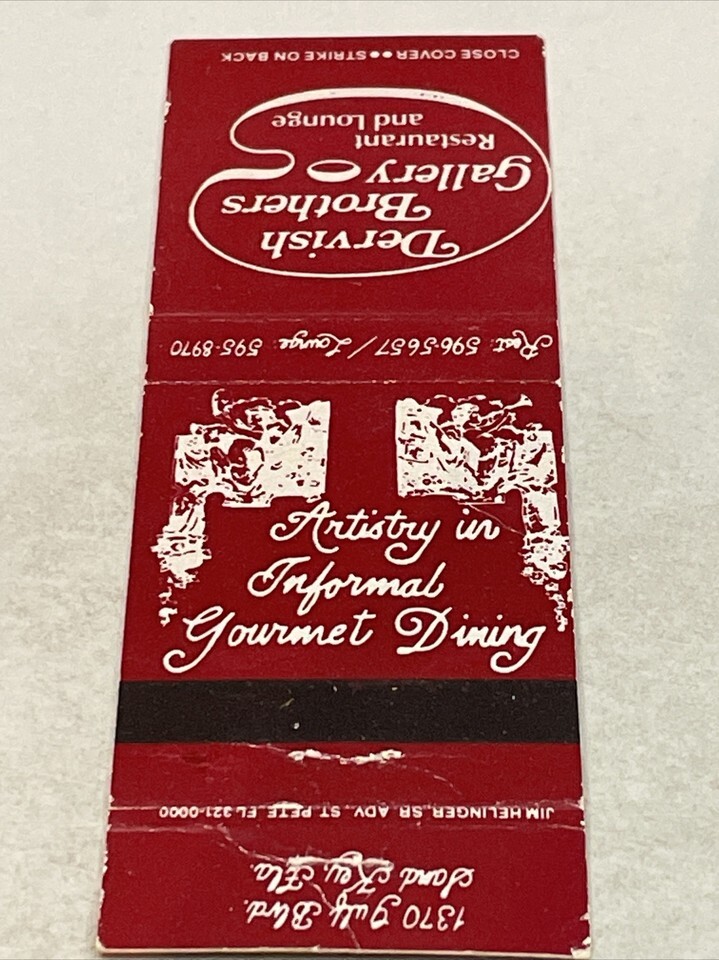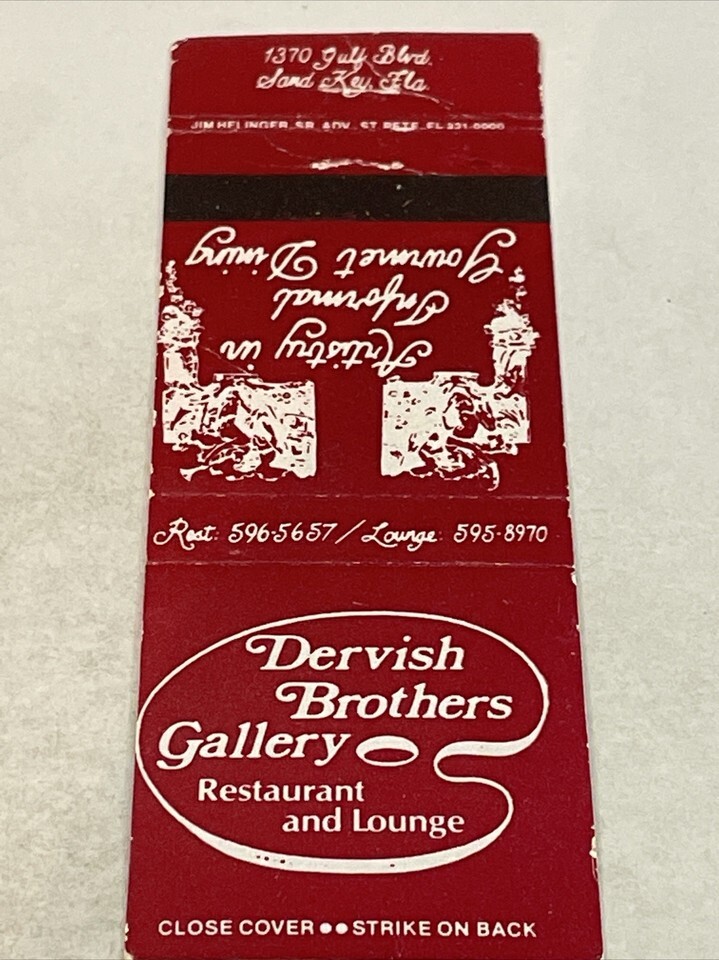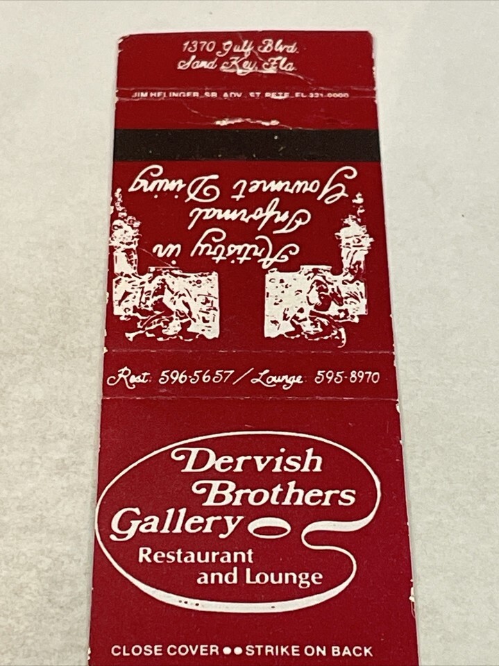- Vintage Matchbook Cover Dervish Brothers Gallery Restaurant Sand Key, FL gmg