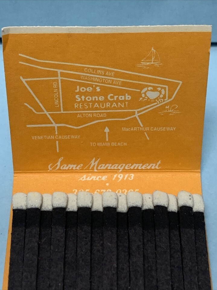 - Vintage Matchbook Cover Joe’s Stone Crab Restaurant Miami Beach, Fl gmg