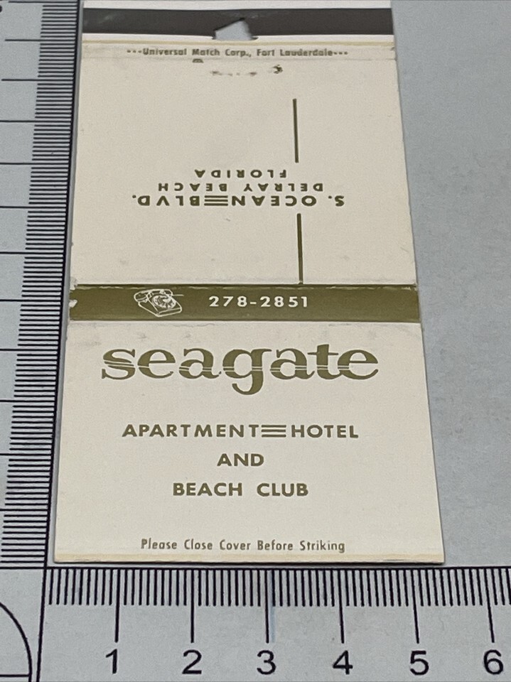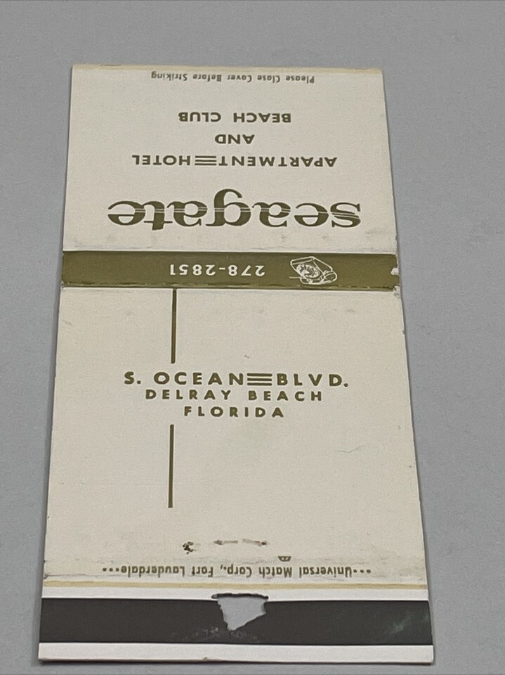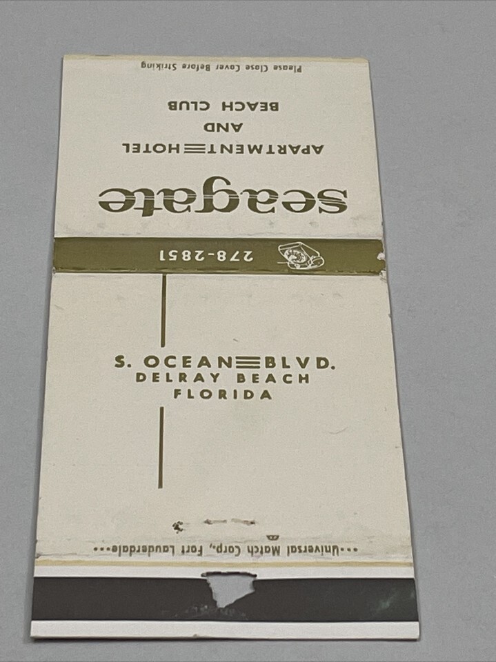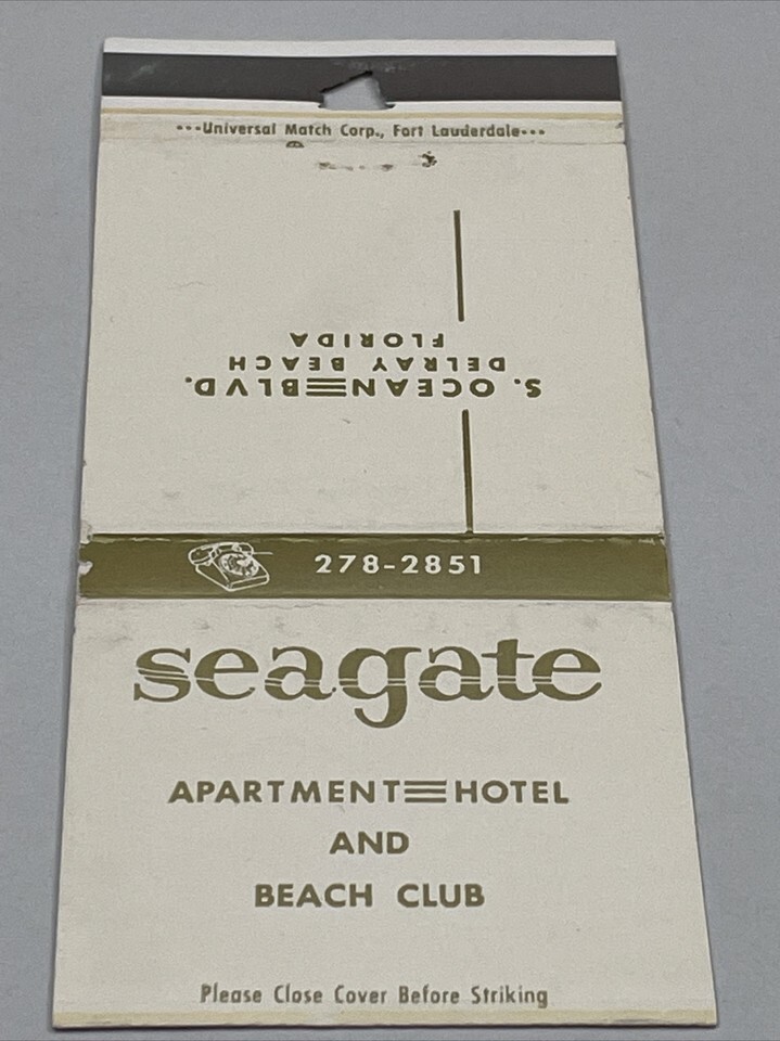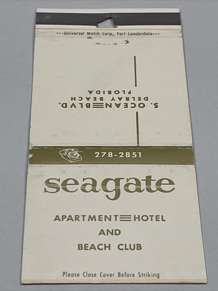 - Vintage Matchbook Cover Seagate Apartment Hotel and Bch Club DelrayBeach FL gmg