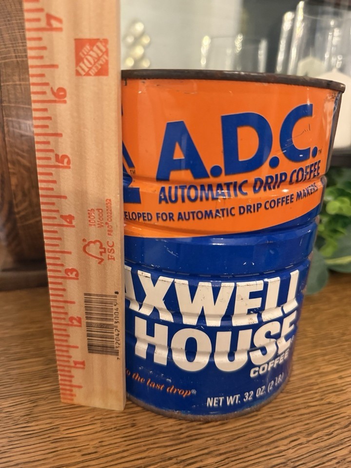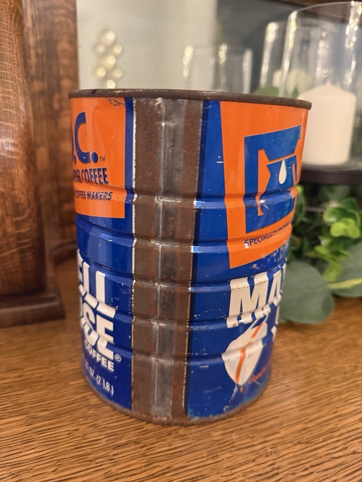 - Vintage Maxwell House ADC Coffee Tin Orange Blue Advertising Can Decor