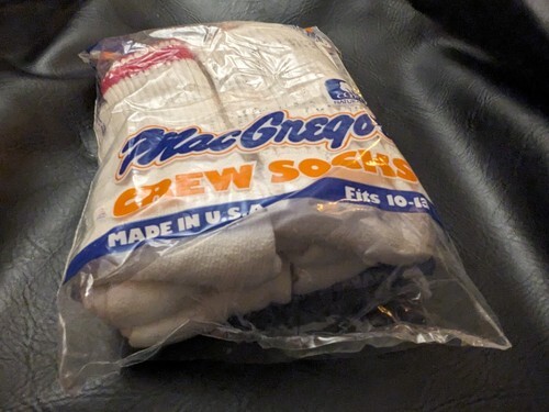 In vendita e un nuovo pacchetto Vintage McGregor White Crew Calzini 6 paia misto cotone a righe da uomo 10 13 USA.