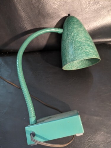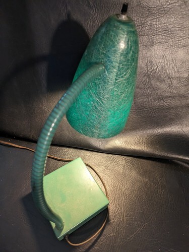 - Vintage Mcm Atomique Spaghetti Corde Nuance Oie Cou Vert Bureau Lampe Fonctionne