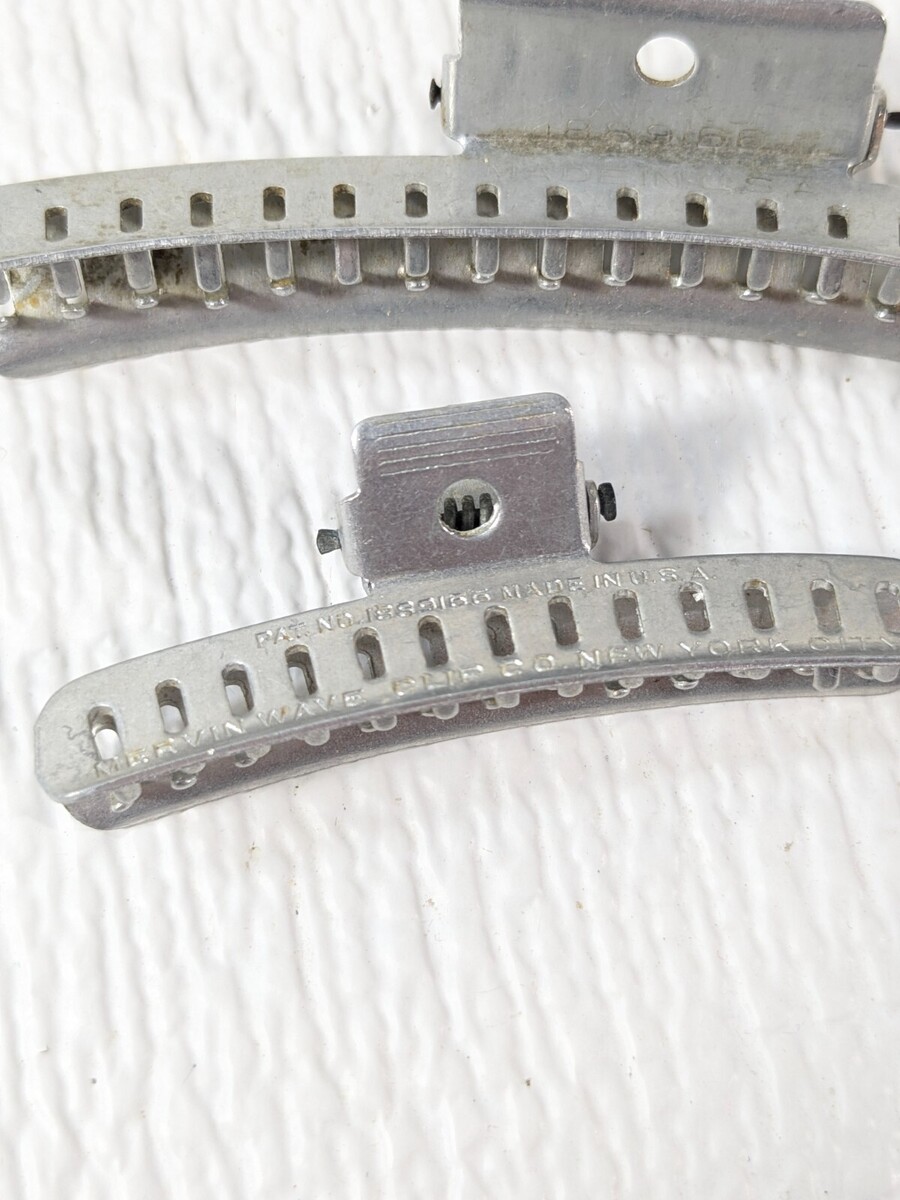 - Vintage Mervin Wave clip metal hair claw clips silver set 2 Made in USA