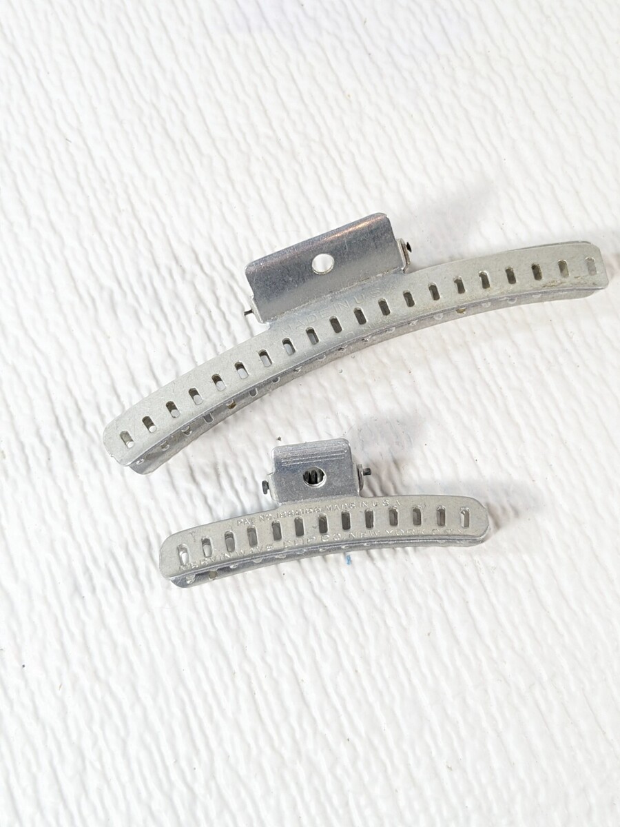 Vintage Mervin Wave clip metal hair claw clips silver set 2 Made in USA