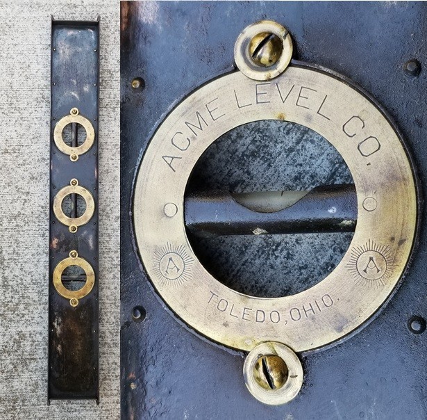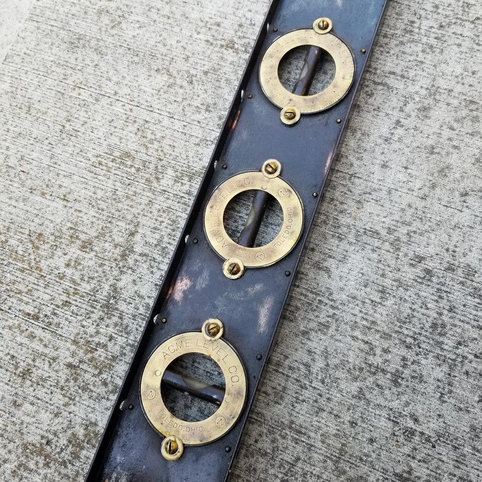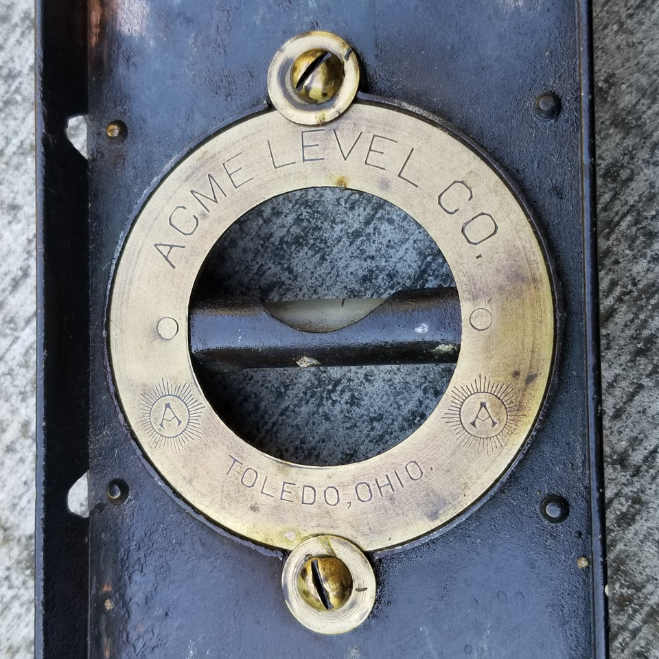 vintage metal level steel "ACME LEVEL CO" TOLEDO OHIO brass WORKS