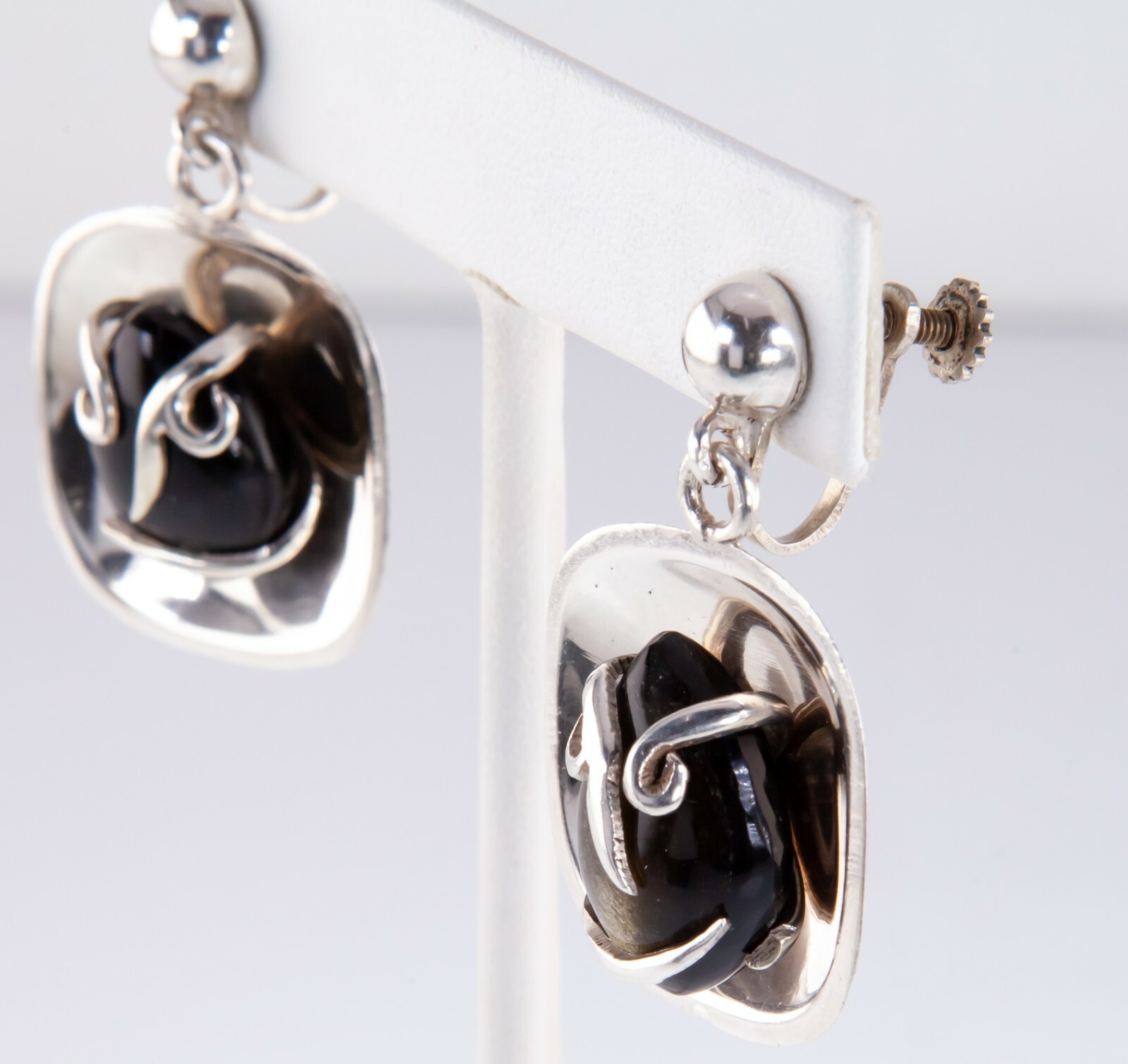 Vintage Mexico AE Schmuck Set Anhanger Ohrringe M / Obsidian Im Set Sterling