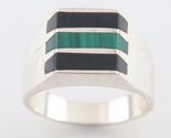 Vintage Mexikanisches Sterlingsilber Ring Mit Malachit & Onyx (Eu 11) Taxco