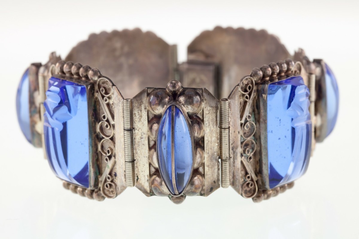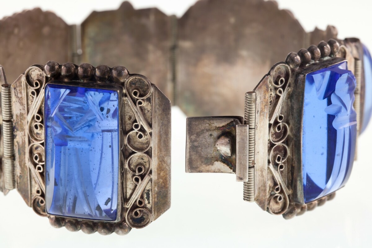 - Vintage Mexiko Icuala Sterlingsilber Blauer Glas Azteken Krieger Armband 7,50"