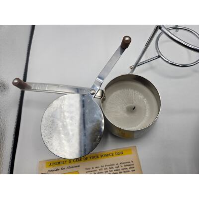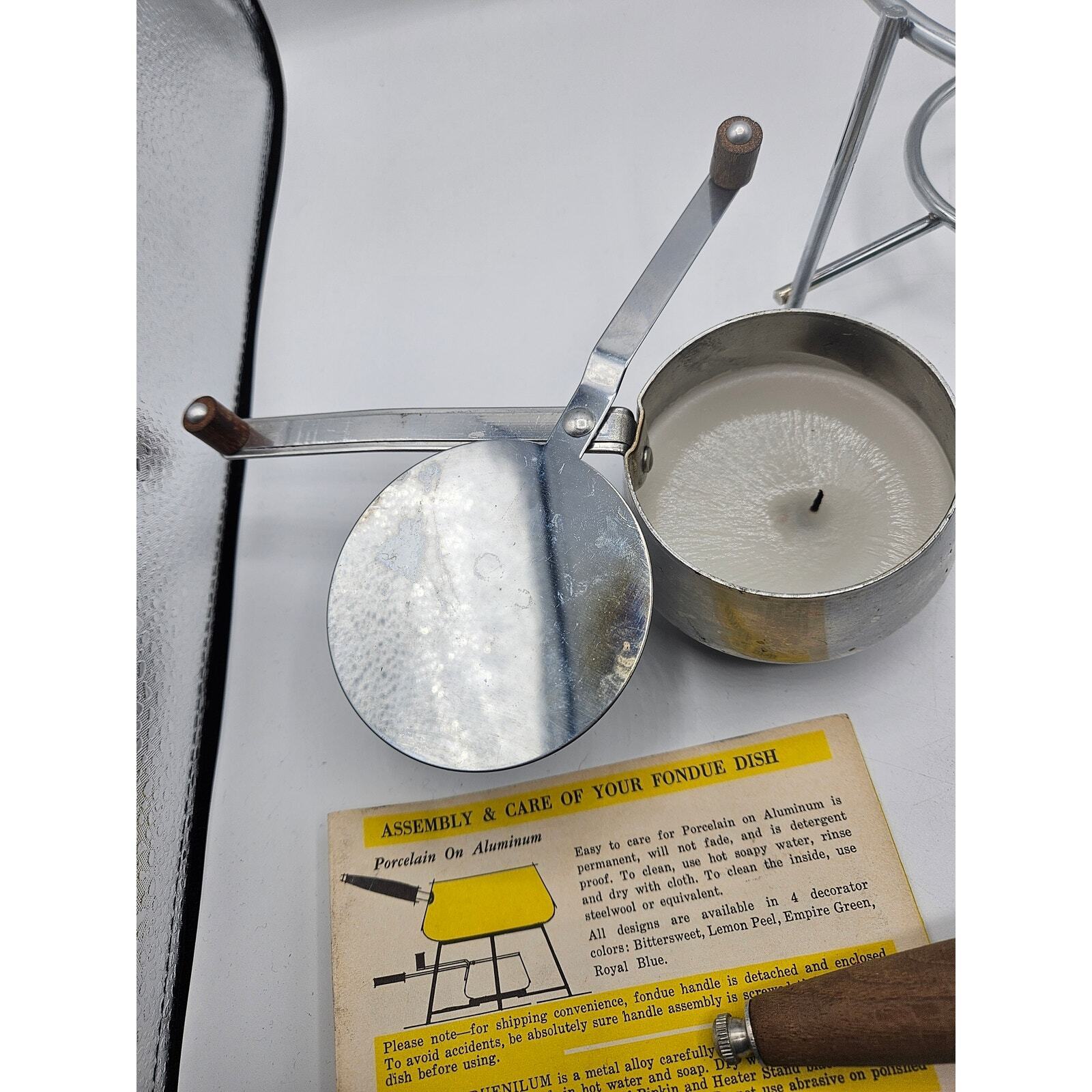 - Vintage Mid Centry Modern Fondue Pot Buehner Wanner Blue Wood Handle