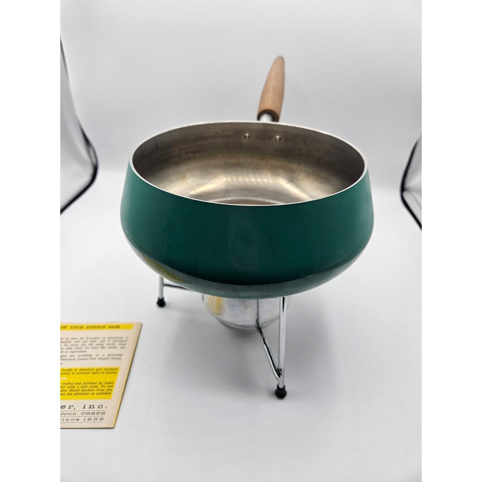 Vintage Mid Centry Modern Fondue Pot Buehner Wanner Blue Wood Handle