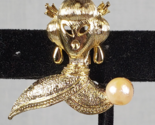 Vintage Mid Century Asian Geisha Lady Faux Pearl Yellow Gold Tone Brooch Pin
