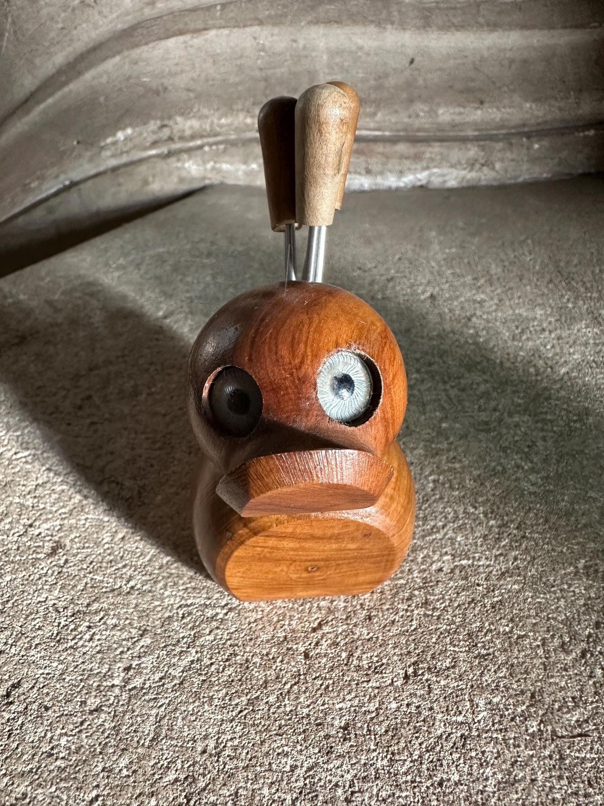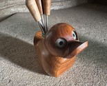 Vintage Mid Century French Retro Rustic Wooden Bird (Duck?) Coctail Pick Holder