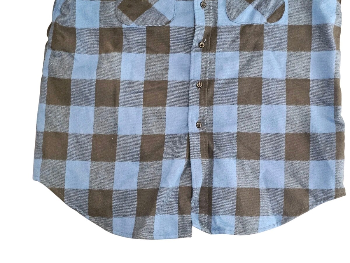 - Vintage Mighty Mac Tallman Blue Buffalo Plaid Flannel Quilted Shirt Men's XL 17