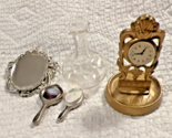 - Vintage Miniature Dollhouse Doll House 5pc Vanity Set Glass Vase Clock