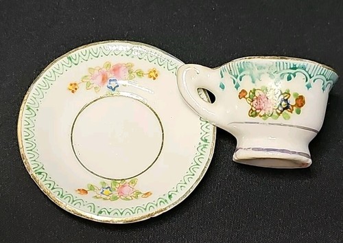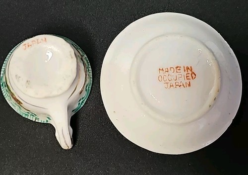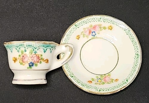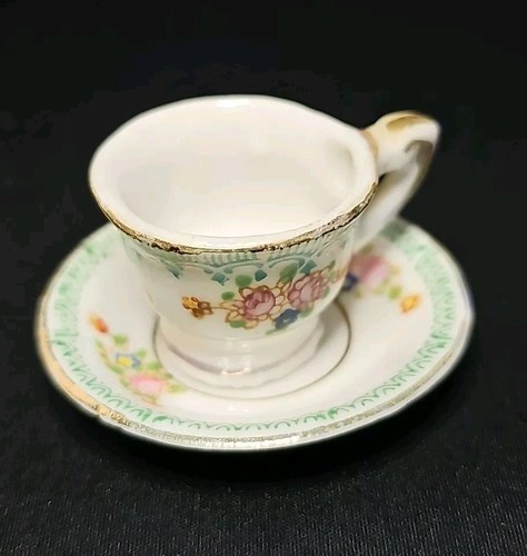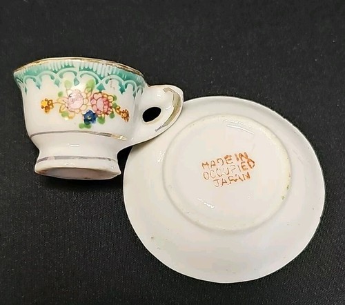 - Vintage Miniature Tiny Tea Cup & Saucer Set Made In Occupied Japan Green Floral