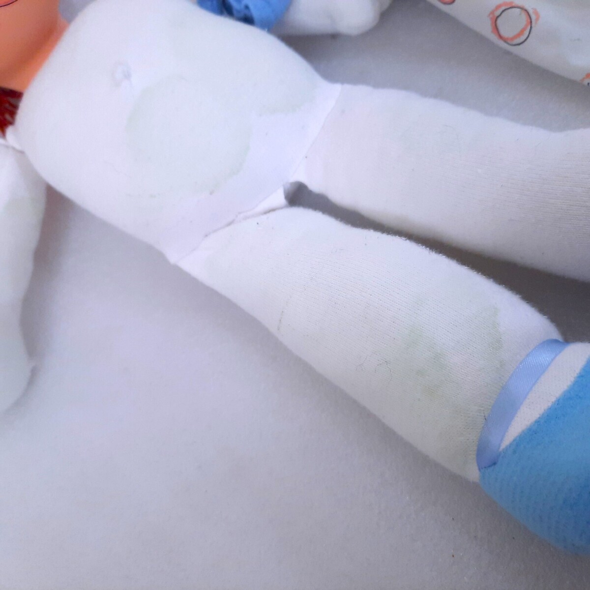 Fair condition. Staining to the dress and doll as shown. Some marks to face. See pics.