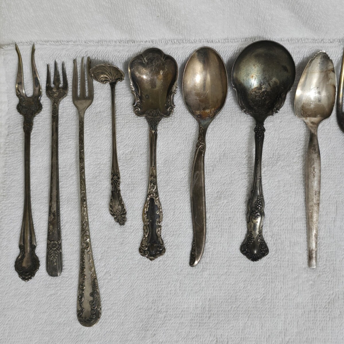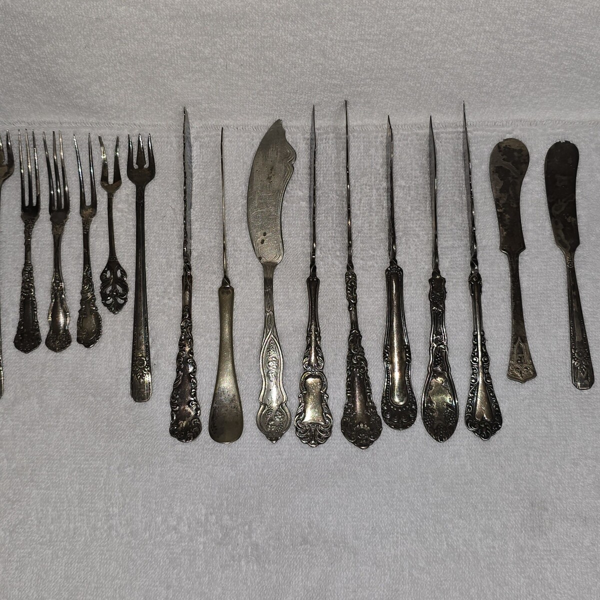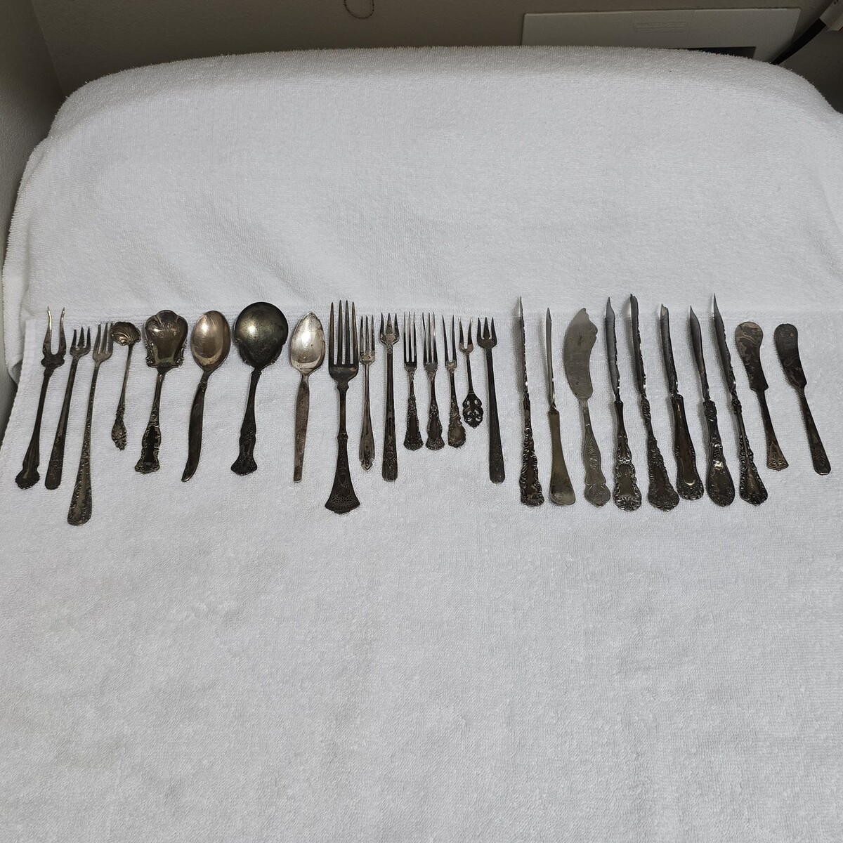 - Vintage Mixed Lot Of 26 Silverplated Antique Pieces Of Silverware 1800s / 1900s