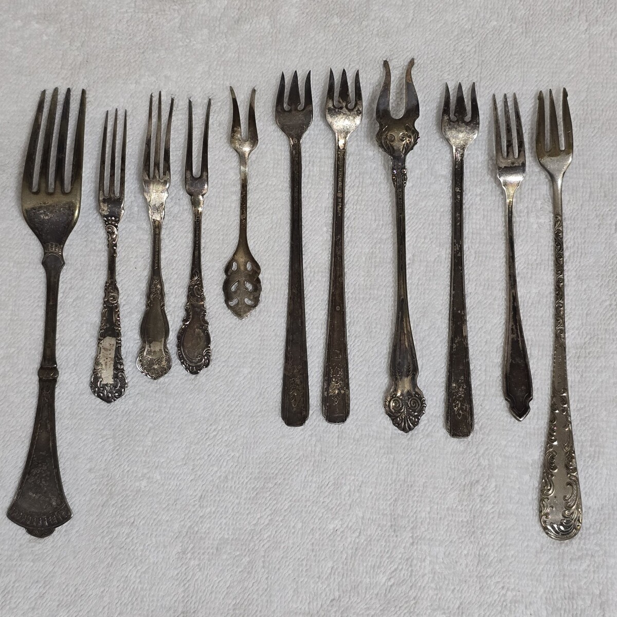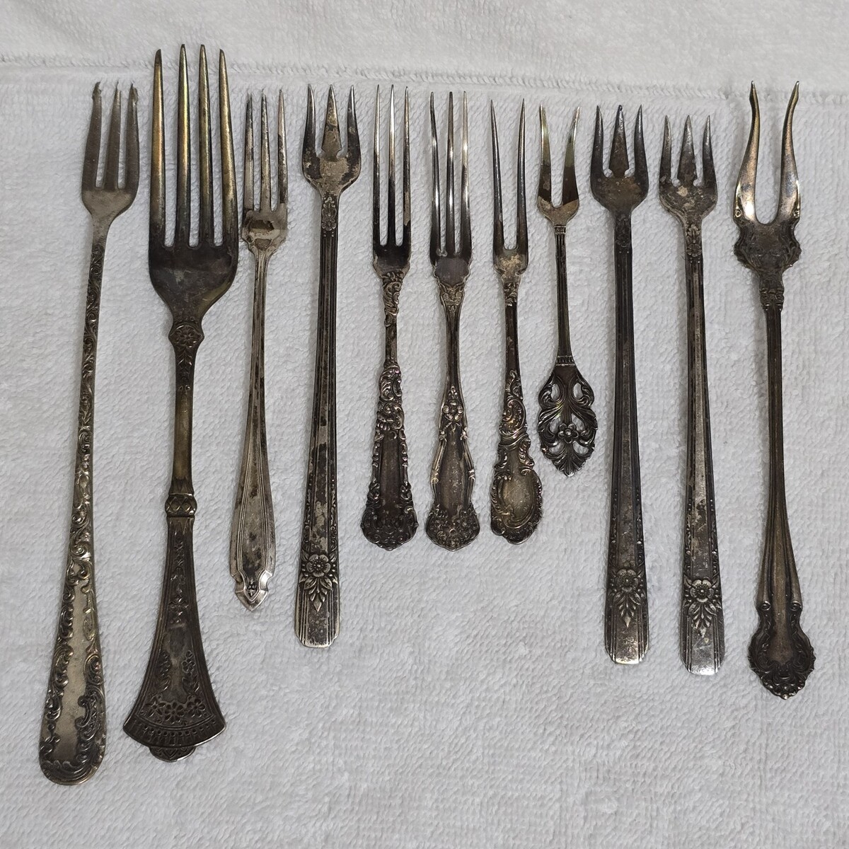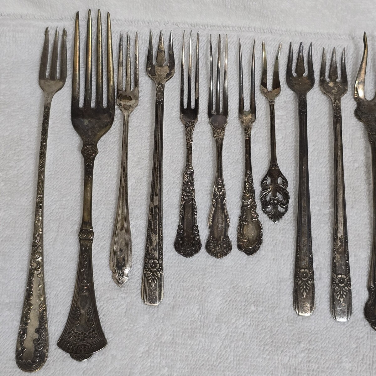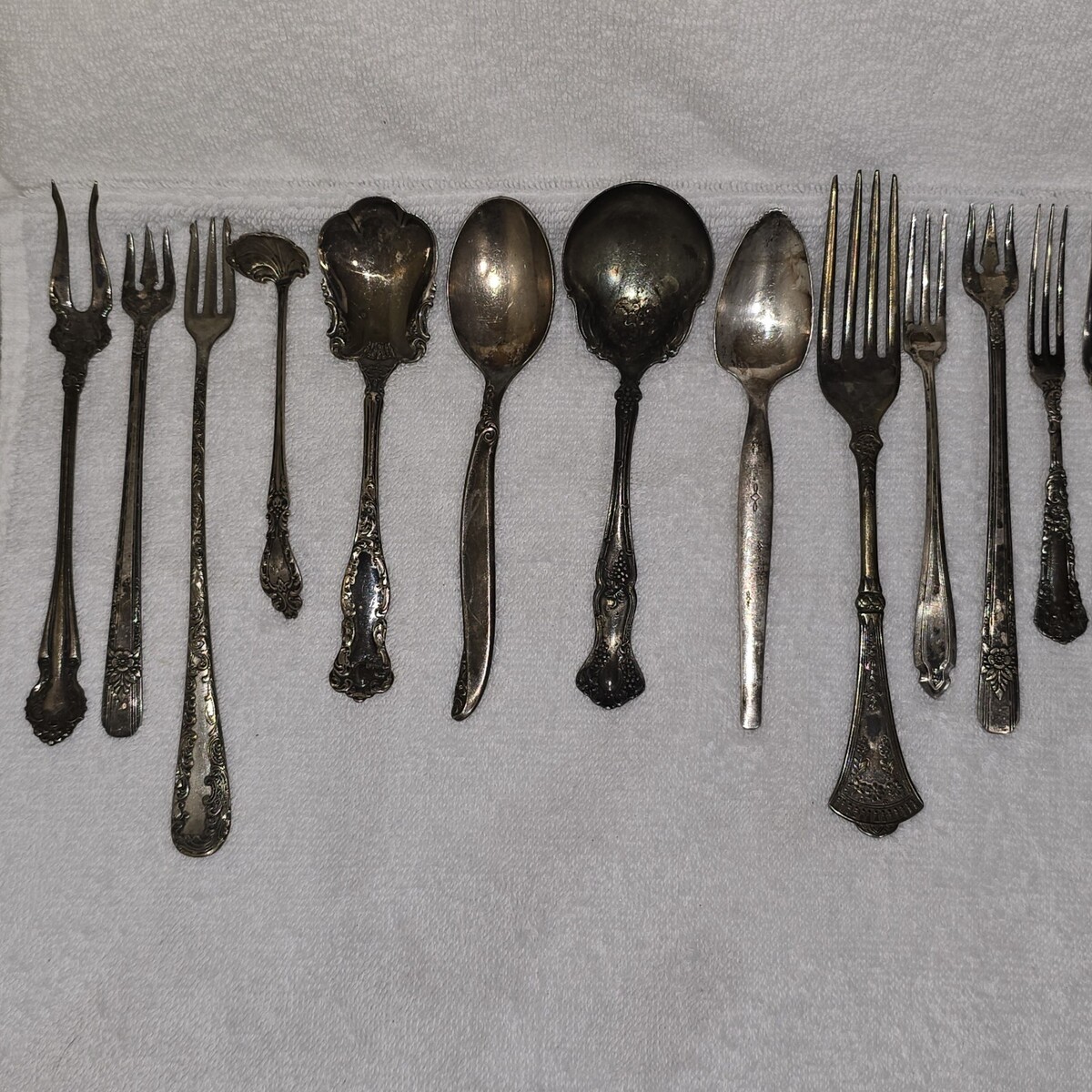 - Vintage Mixed Lot Of 26 Silverplated Antique Pieces Of Silverware 1800s / 1900s