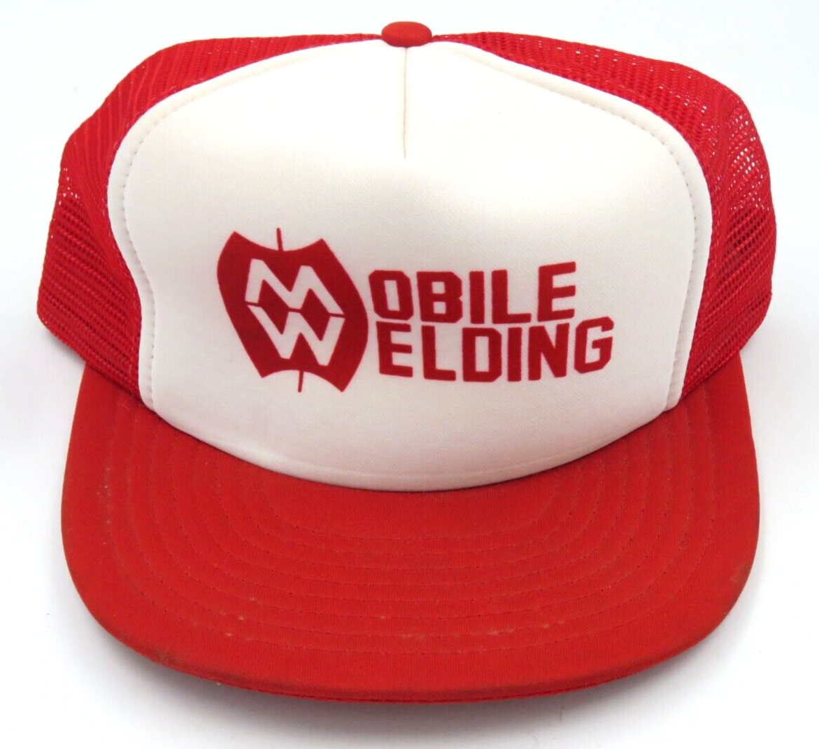 - Vintage Mobile Welding Mesh Trucker Hat Snapback Red White Chicago