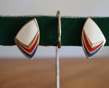 - Vintage Monet Cream Red Blue Enamel Pierced Earrings Gold Tone Triangle Mod 1.3"