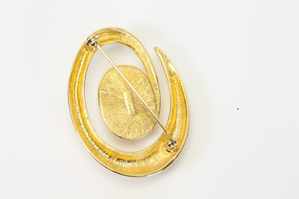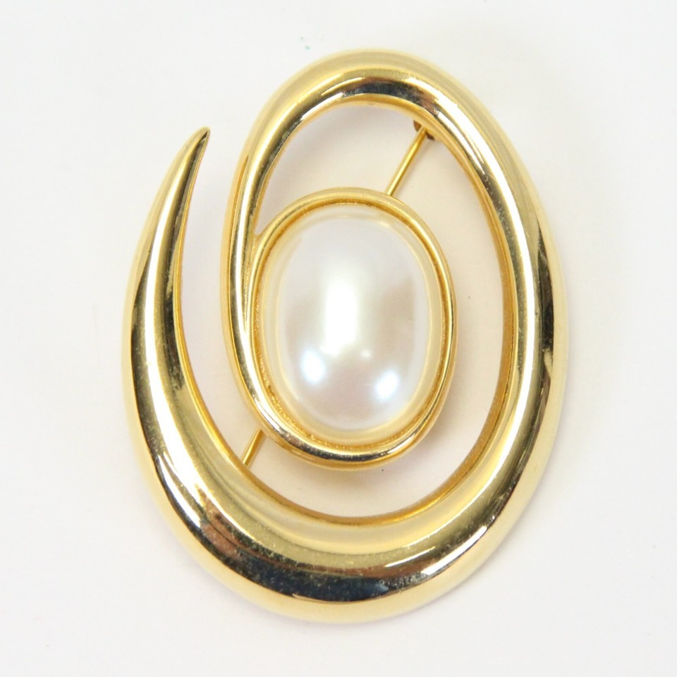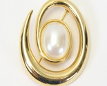 - Vintage Monet Faux Pearl Gold Tone Swirl Brooch Pin Signed 1.8" H x 1.4" W