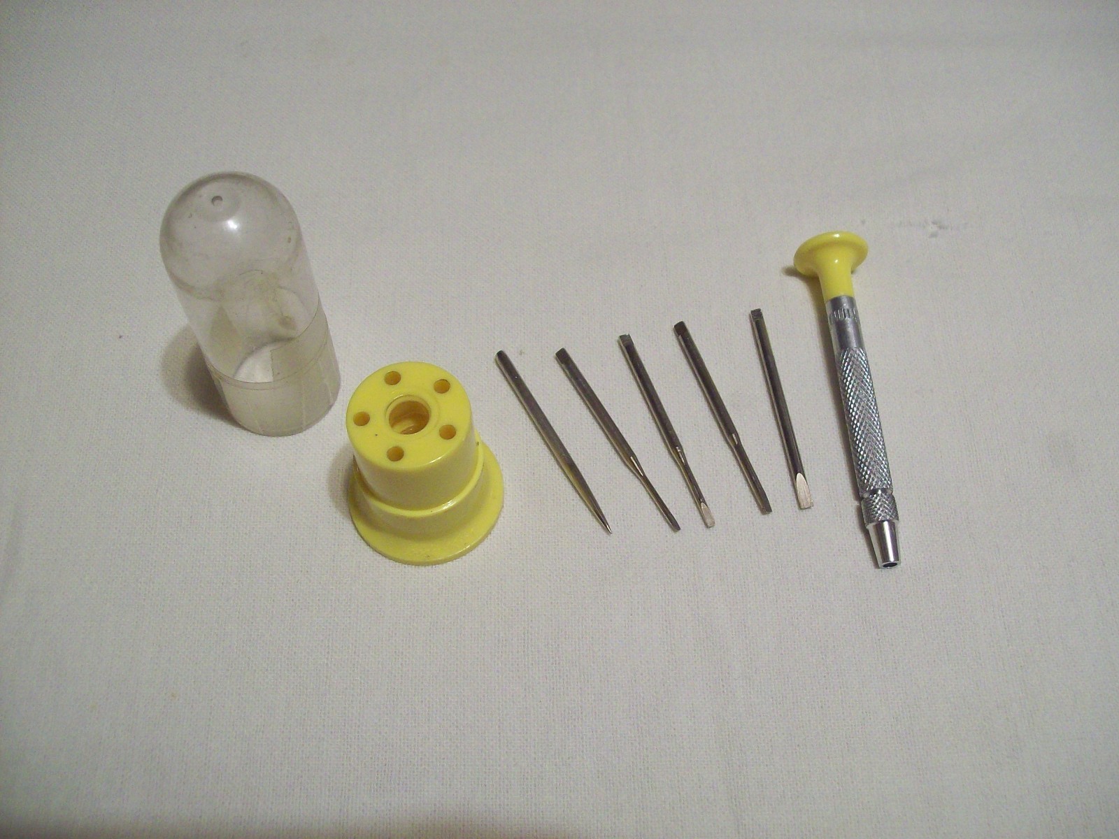 Vintage Moody Kit 5 Pc. Screwdriver Set - Yellow - clear top is cracked