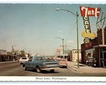 Vintage Moses Lake Street View Turf Cafe Derby Room Cars Truck WA Postcard