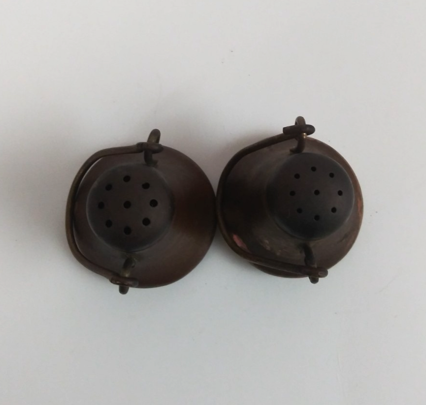 - Vintage Mud Pie Copper & Brass Pot Bail Handle Salt & Pepper Shakers