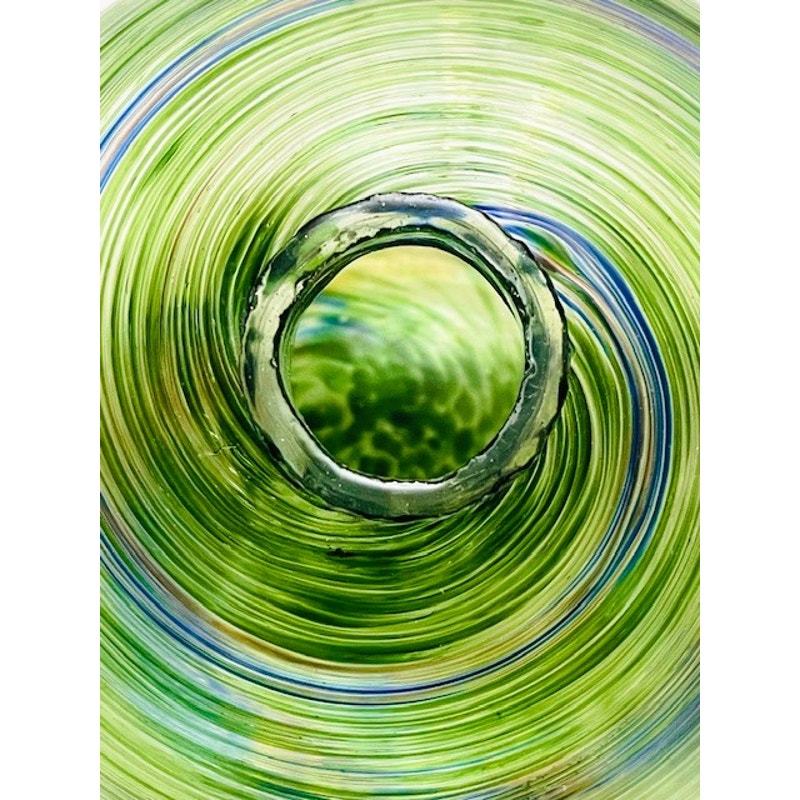- Vintage Murano Hand Blown Green, Blue, & Brown Swirl Glass Vase-EXCELLENT