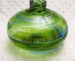 Vintage Murano Hand Blown Green, Blue, Brown Swirl Glass Vase. Beautiful piece of Murano glass features pretty shades of green, blue brown in a swirl pattern, small opening on top is smoothed down, bottom swirls fade into a splash pattern. Measures 6" across the widest part, 4" tall, and top opening is 1 1/2" across. In excellent condition. Comes from a smoke free, pet free home.