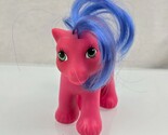 Blast off to playtime adventures with this vintage My Little Pony G1! This sweet pink pony with vibrant blue hair boasts an adorable rocket ship symbol, adding a touch of cosmic charm to her design. The molded details of her hooves and gentle green eyes bring her to life, inviting imaginative play. With her nostalgic appeal, this pony is a delightful addition to any collection or a comforting companion for a child's make-believe scenarios. Imagine her gracing a display shelf, being part of a whimsical birthday party, or sparking creative playdates.