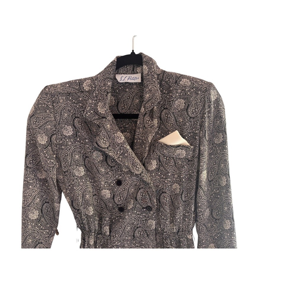 - Vintage NWT 80s Paisley Print Dress Womens Size 6 S.L. Petites Black White
