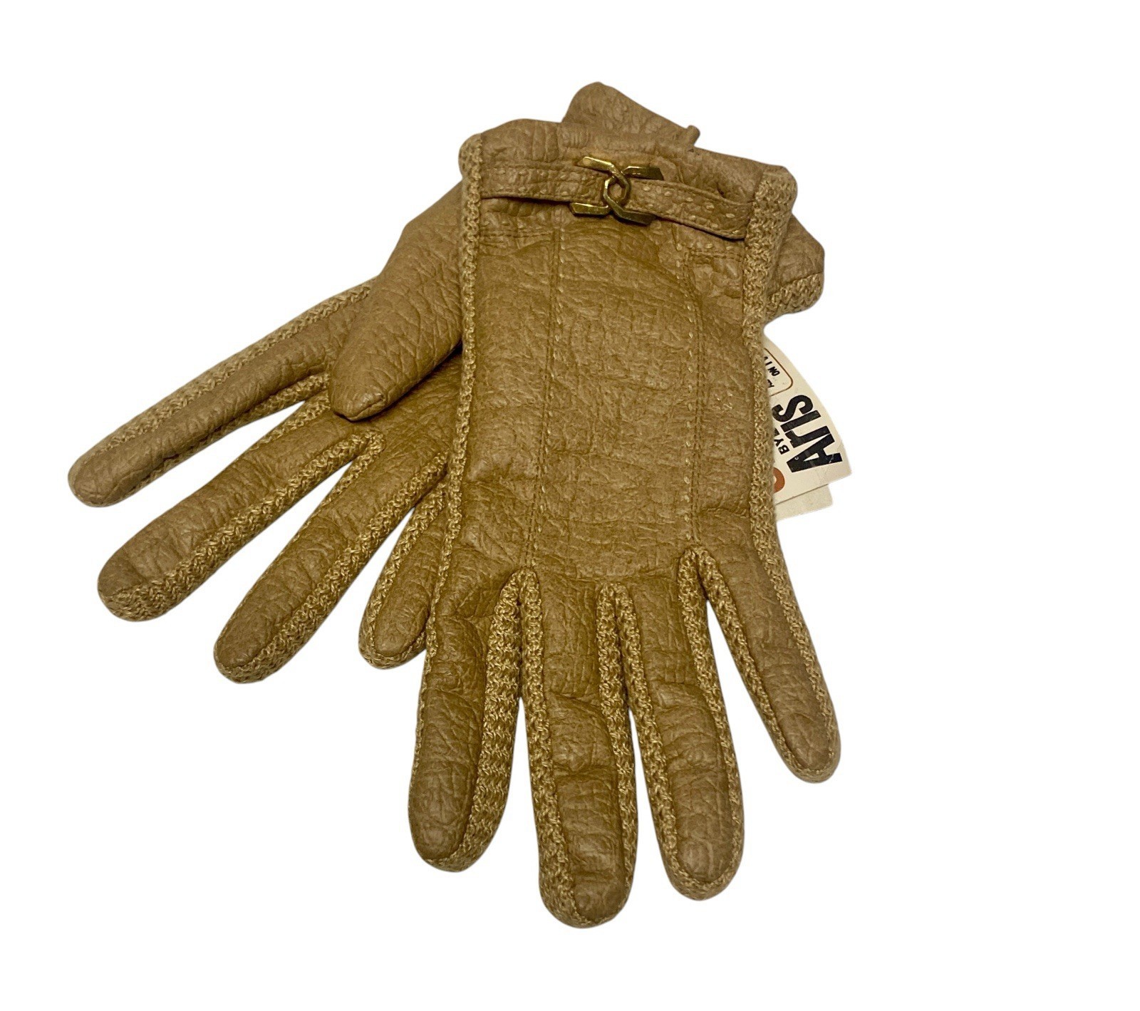 Vintage NWT Aris Gloves The Snuggler Womens Brown Faux Leather Size Medium