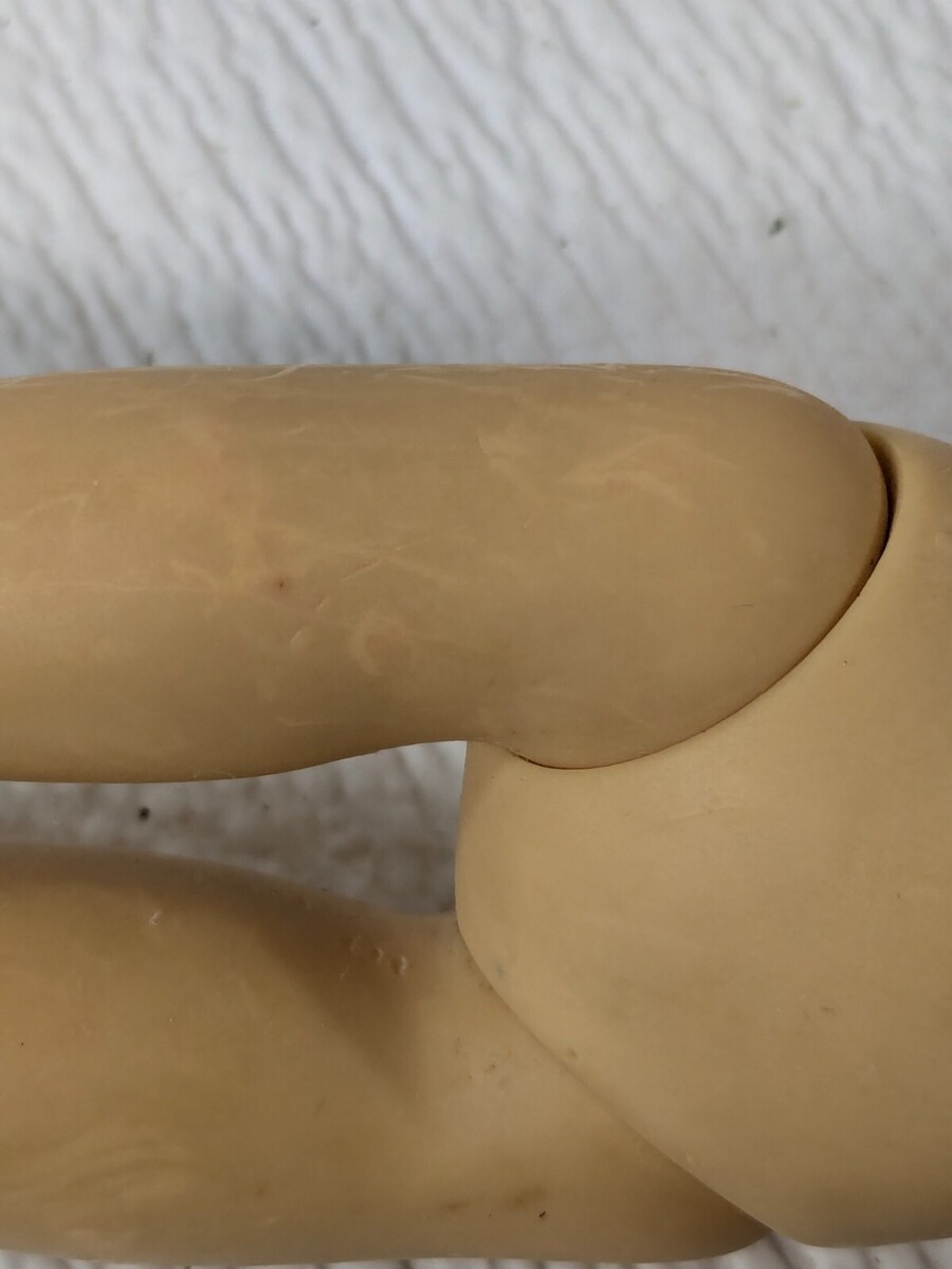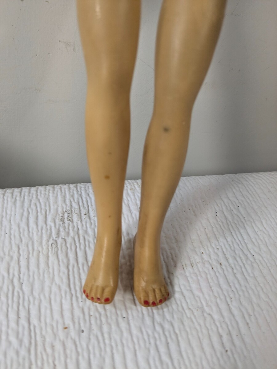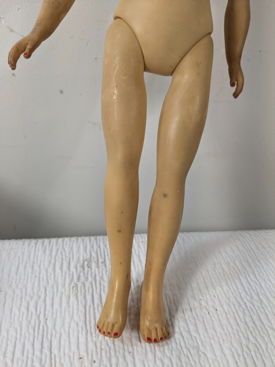 Needs TLC. Heavy play wear. Needs lots of work especially to the hair and could use repainting. Paint wear/dirt wear/marks/scuffs/scratches from use. See pics for details measurements.