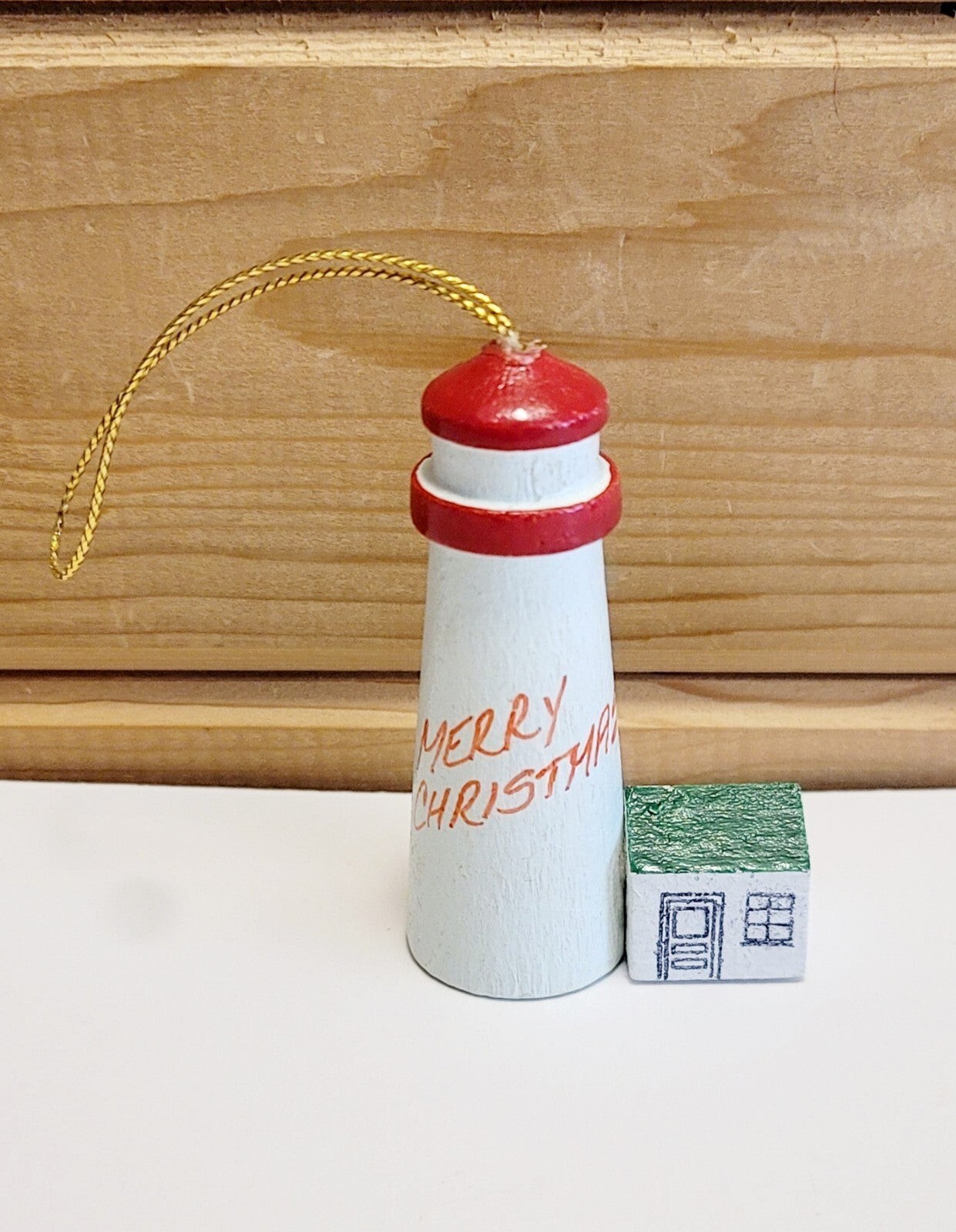 - Vintage Nautical Lighthouse Christmas 1970 Handmade Maine 3" Ornament