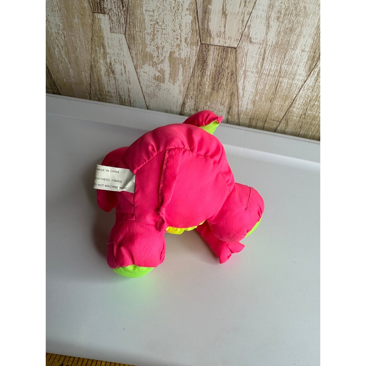- Vintage Neon Pink Yellow Elephant Plush Stuffed Animal Toy 7"
