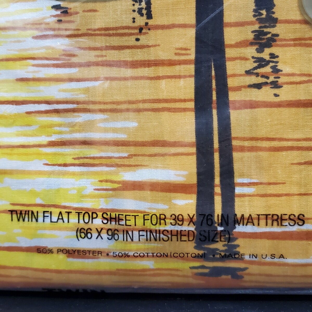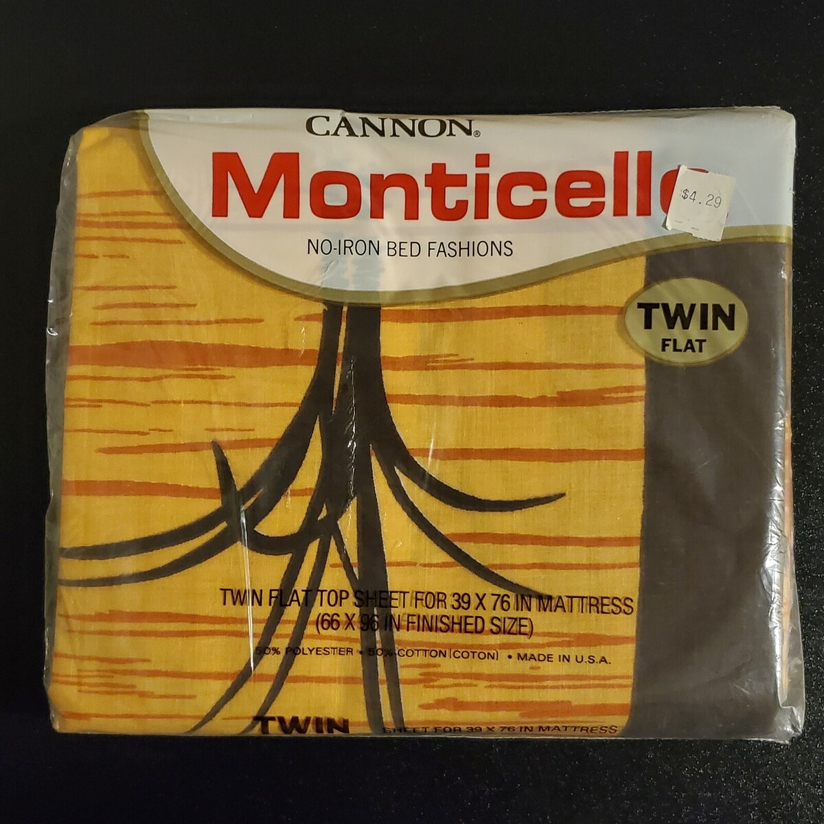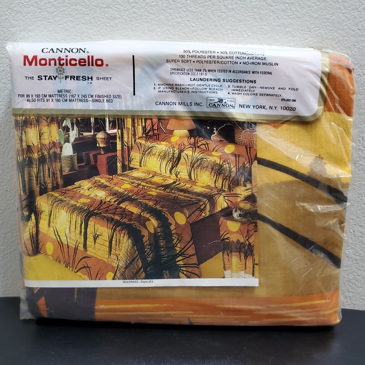 Vintage New in Package 60s / 70s Cannon Monticello Orange Sunset / Tall Reeds in Water Style (Seagrass 253) No Iron Twin Flat Sheet. 50% Cotton / 50% Polyester. Made in USA. Rare / Hard to find.