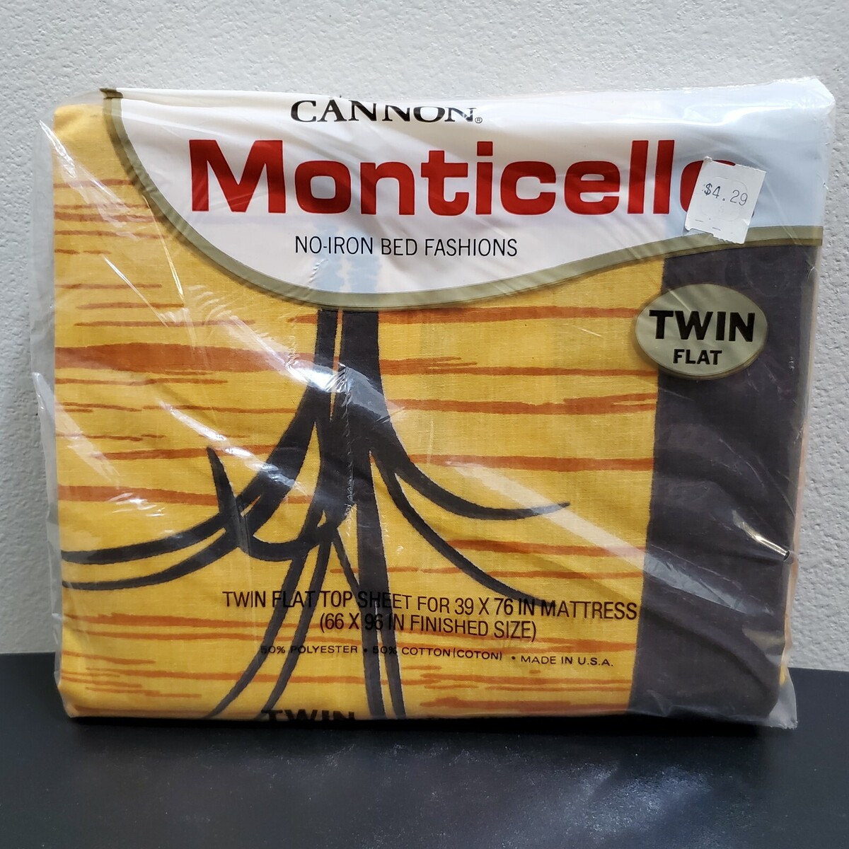 - Vintage New Cannon Monticello Seagrass 253 Orange Sunset No Iron Twin Flat Sheet
