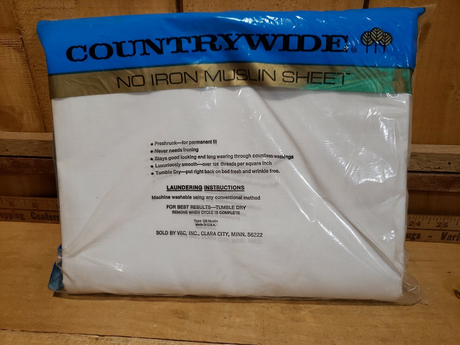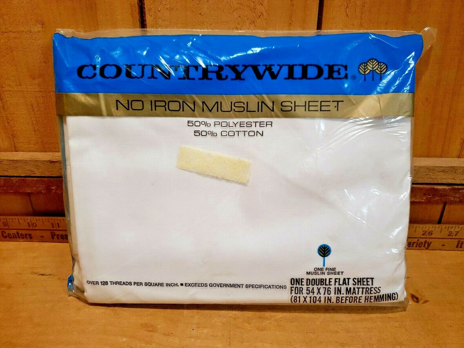 - Vintage New Countrywide Muslin Full Double Flat Sheet White 50% Cotton 50% Poly