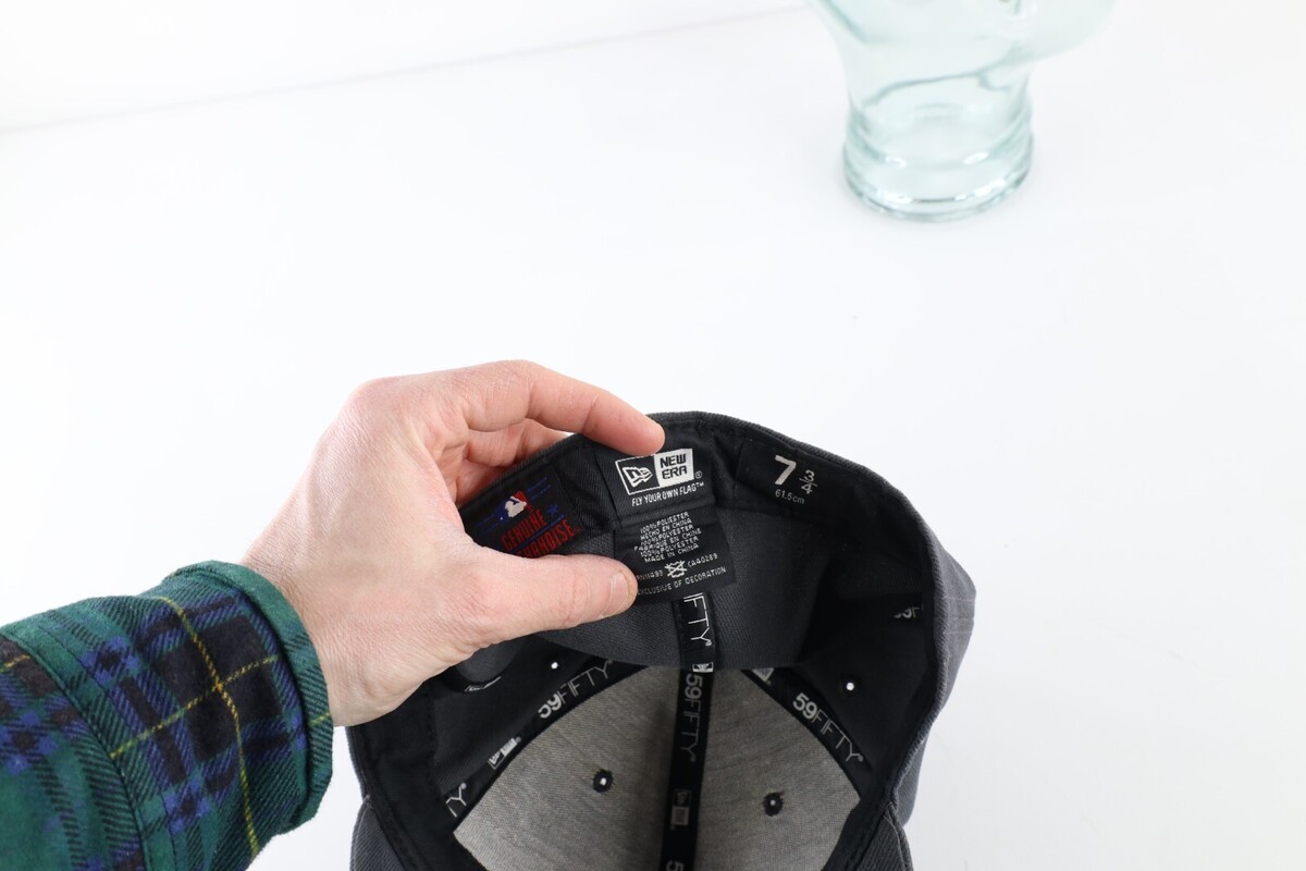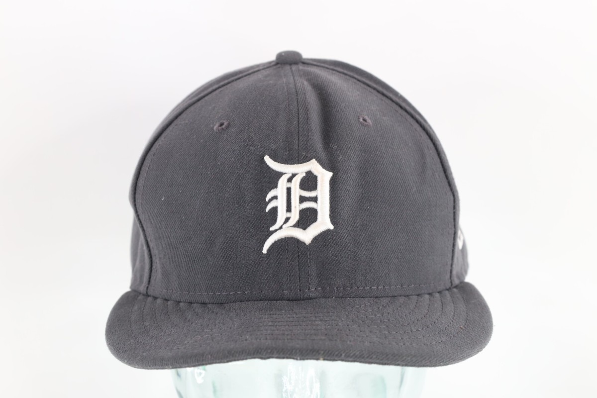 - Vintage New Era Old English D Detroit Tigers Baseball Fitted Hat Gray 7 3/4