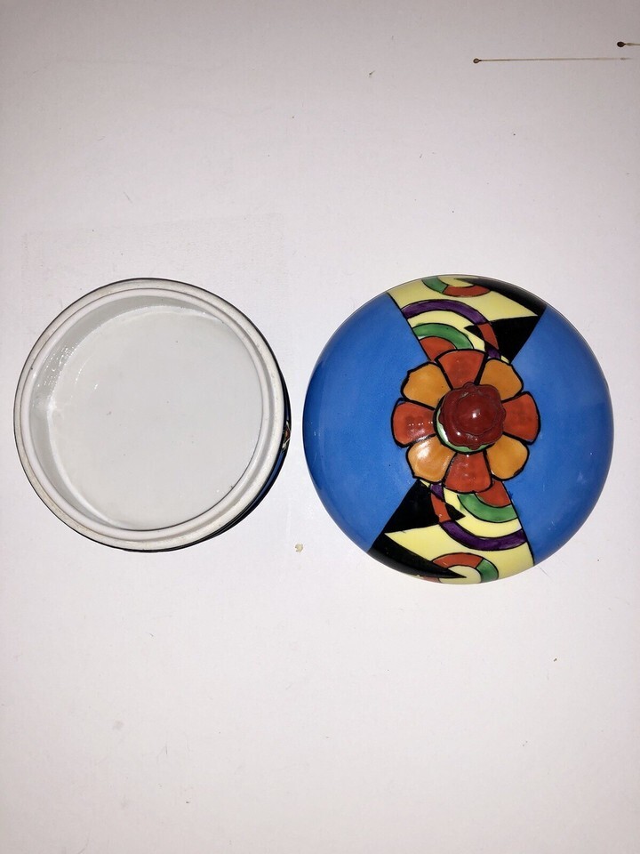 Vintage Nigoya Japan Hand Painted Dome Top Handle Trinket Box Dish 4” X 5” Blue