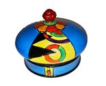 This beautiful vintage trinket box dish is a must-have for any collector of unique and exquisite items. Handmade in Japan, this piece features a hand-painted design with a dome top and handle. Measuring 4 inches by 5 inches, it is the perfect size for storing your small treasures or as a decorative piece. The stunning multicolor is sure to catch the eye of anyone who sees it. Whether you're a fan of trinket boxes or simply appreciate finely crafted items, this piece is sure to delight.