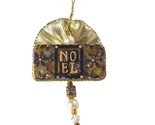 - Vintage Noel Christmas Brooch Gold Tone Black Beaded Ornament Holiday Pin