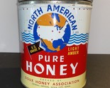 - Vintage North American Pure Honey Empty Tin Can W/Lid -- 1950's