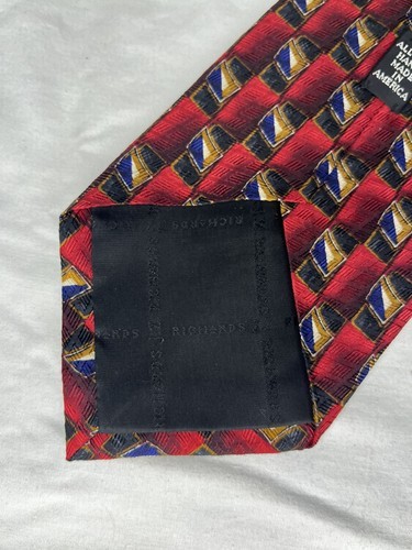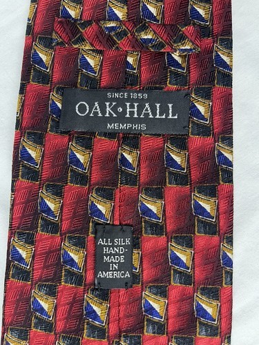 - Vintage Oak Hall Memphis Tie Blue Red Gold Geometric Silk USA Made