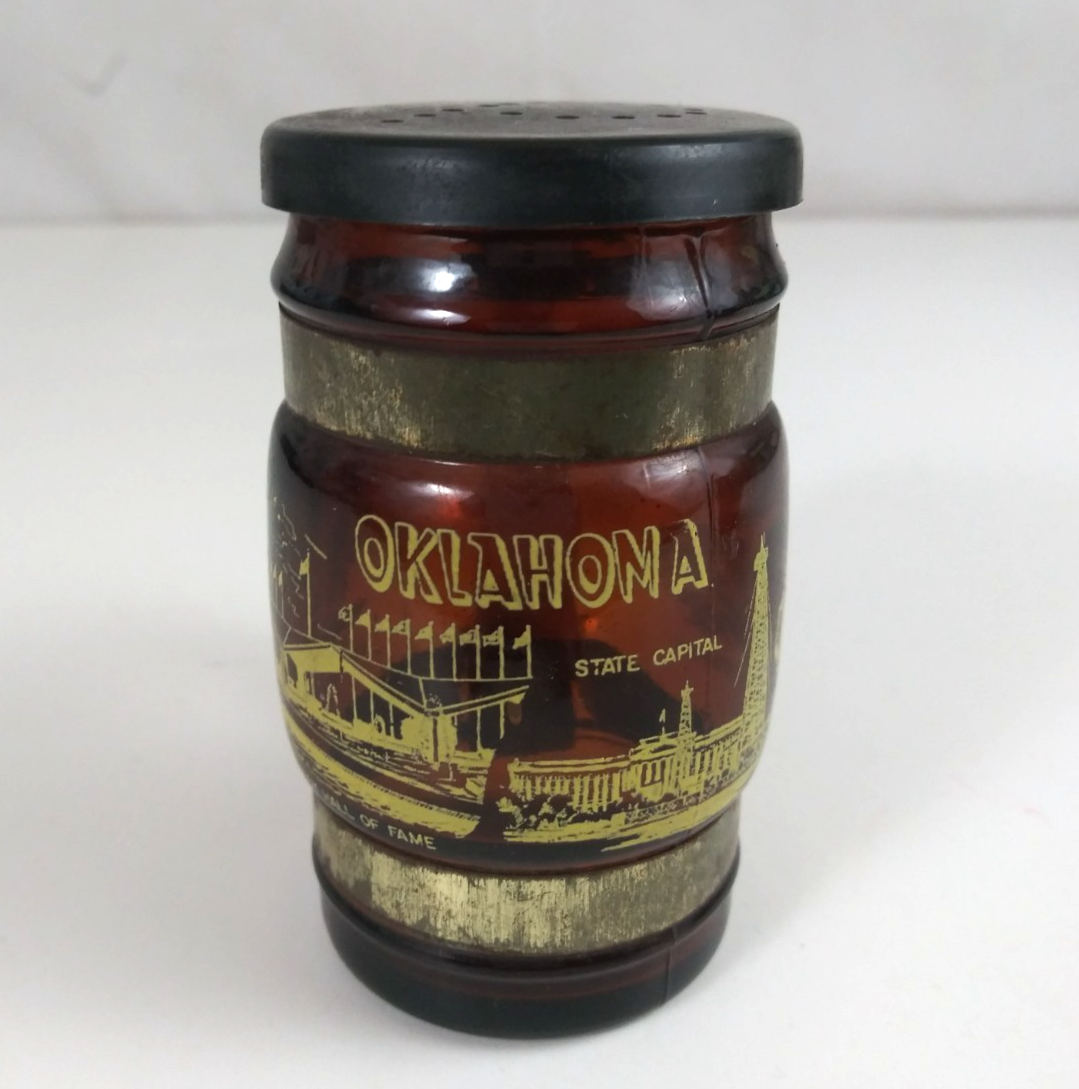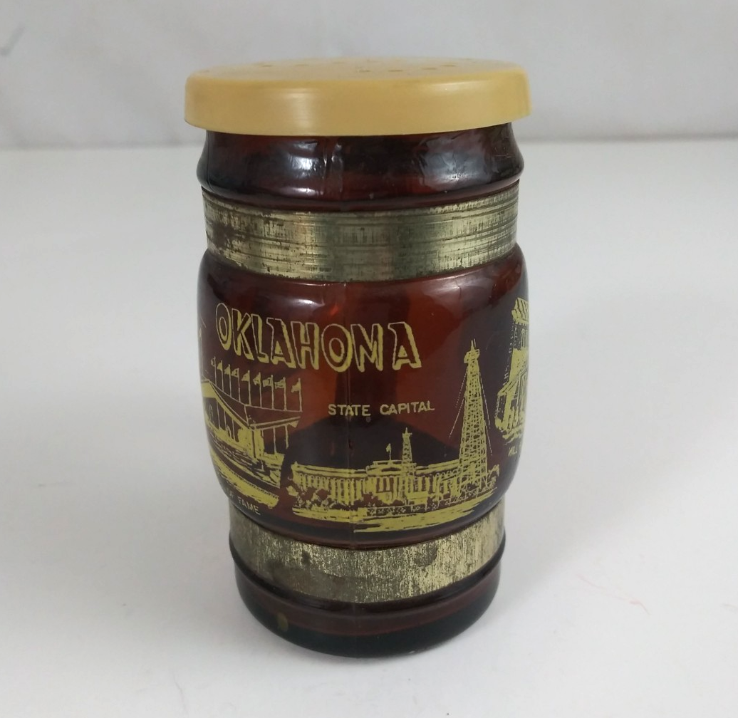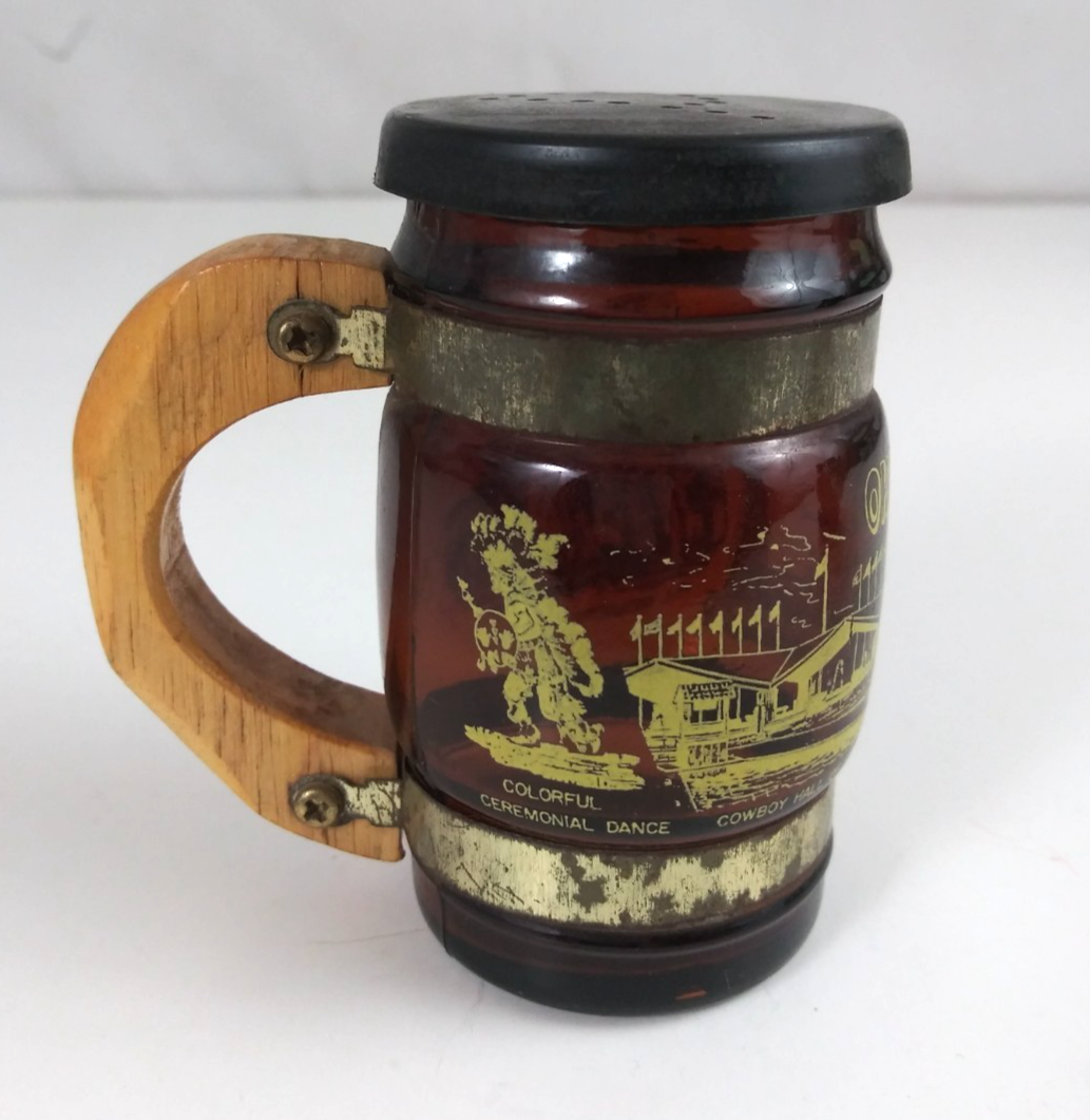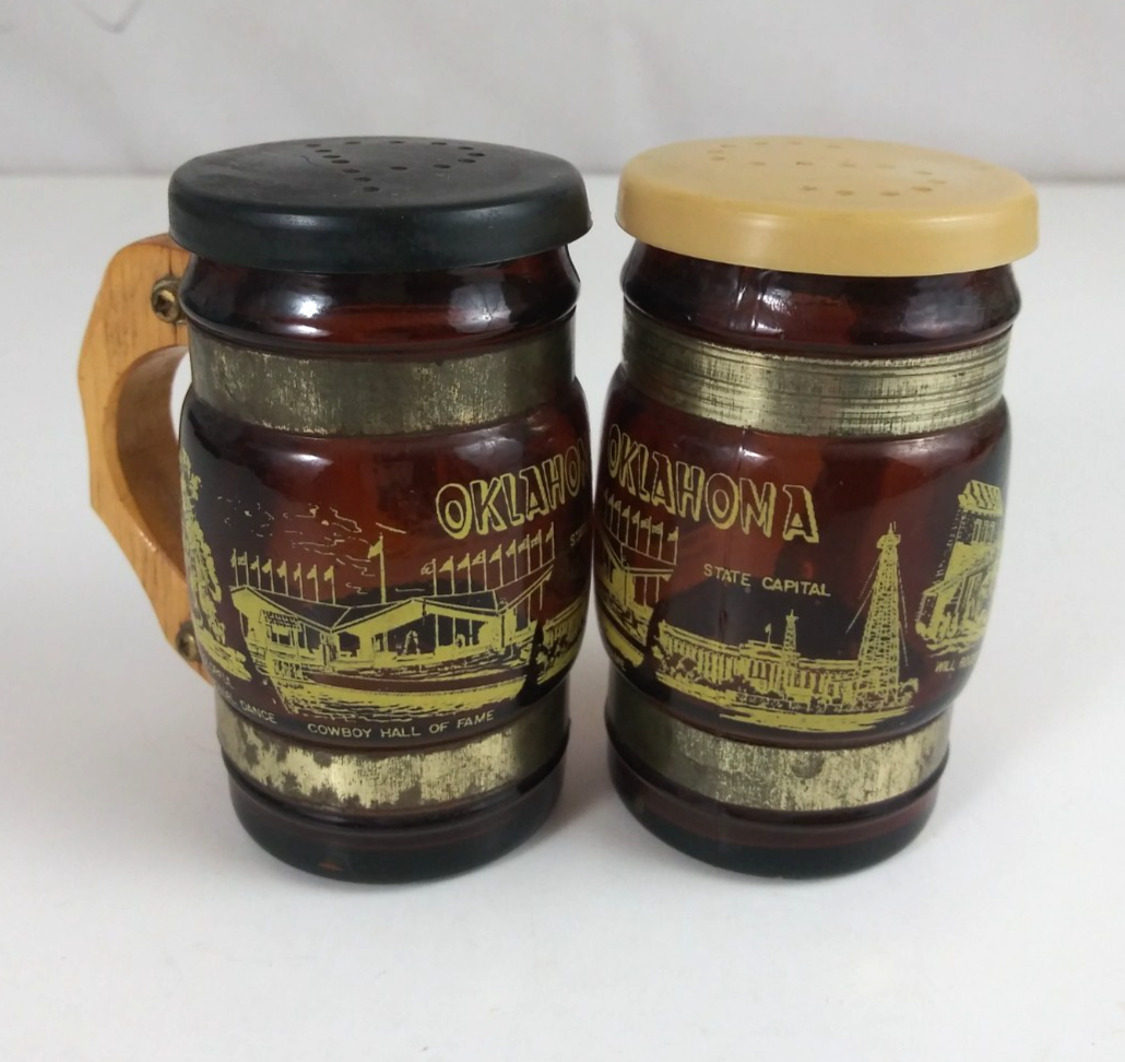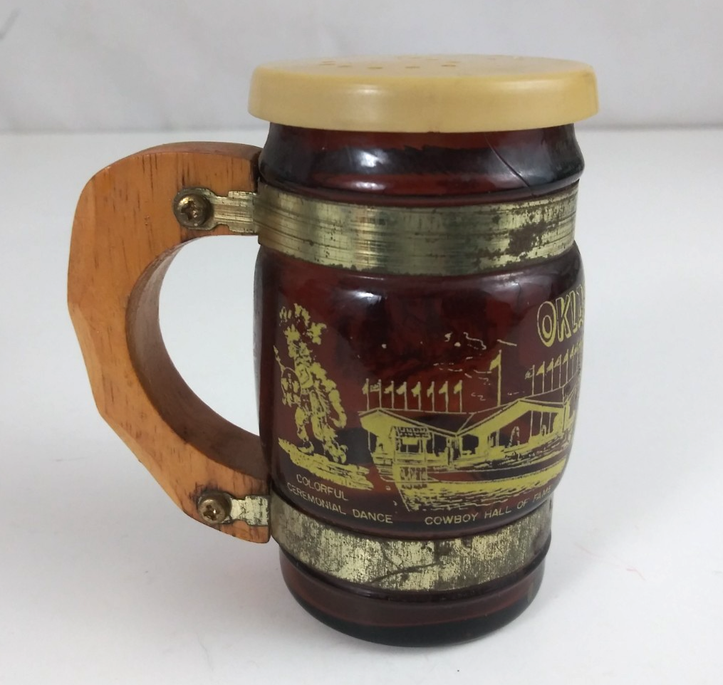 - Vintage Oklahoma Cowboy Hall Of Fame Souvenir Barrel Mug Salt & Pepper Shakers
