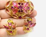 Vintage Open Back Gold Tone Pink Rhinestone Brooch And Clip On Earrings