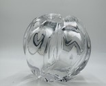 This beautiful vintage Orrefors Swedish art glass vase is a stunning piece that will add a touch of mid-century modern style to any collection. The rose bowl design is abstract in pattern and features clear crystal glass that is hand-blown with precision. The vase stands at 4.5 inches tall and is 6 inches long and wide.
