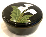 - Vintage Otagirl Calla Lily Round Trinket Box with Lid Lacquered Black Japan